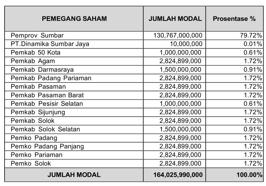 ii. Pemilik Saham Perusahaan didirikan Pemprov Sumbar bersama PT.Dinamika Sumbar Jaya (BUMD).